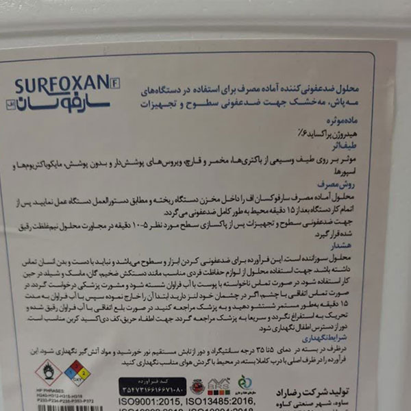 سارفوکسان اف، ضدعفونی کننده سطوح با قابلیت استفاده در دستگاه های مه پاش و مه خشک